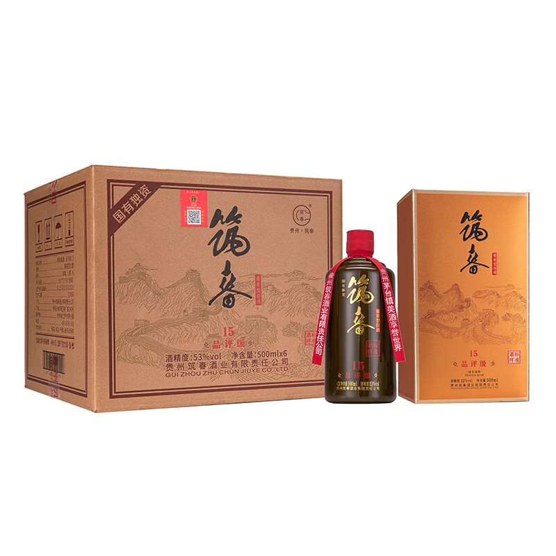 筑春 品评级 15 酱香型白酒 53度 500ml*6瓶 整箱装 年货 送礼价格:5899.00元!