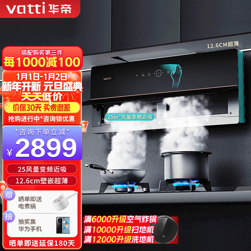 华帝(VATTI)i11209理想家X5壁嵌超薄可达25风量变频双腔近吸抽油烟机智控挥手降噪家用自清洁 侧吸油烟机 i11209单品价格:2899.00元!
